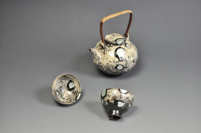 최우수상_ 나용환 「철화덤벙물고기문다기」 옹기토, 산화철, 백토, 덤벙음각철화기법
